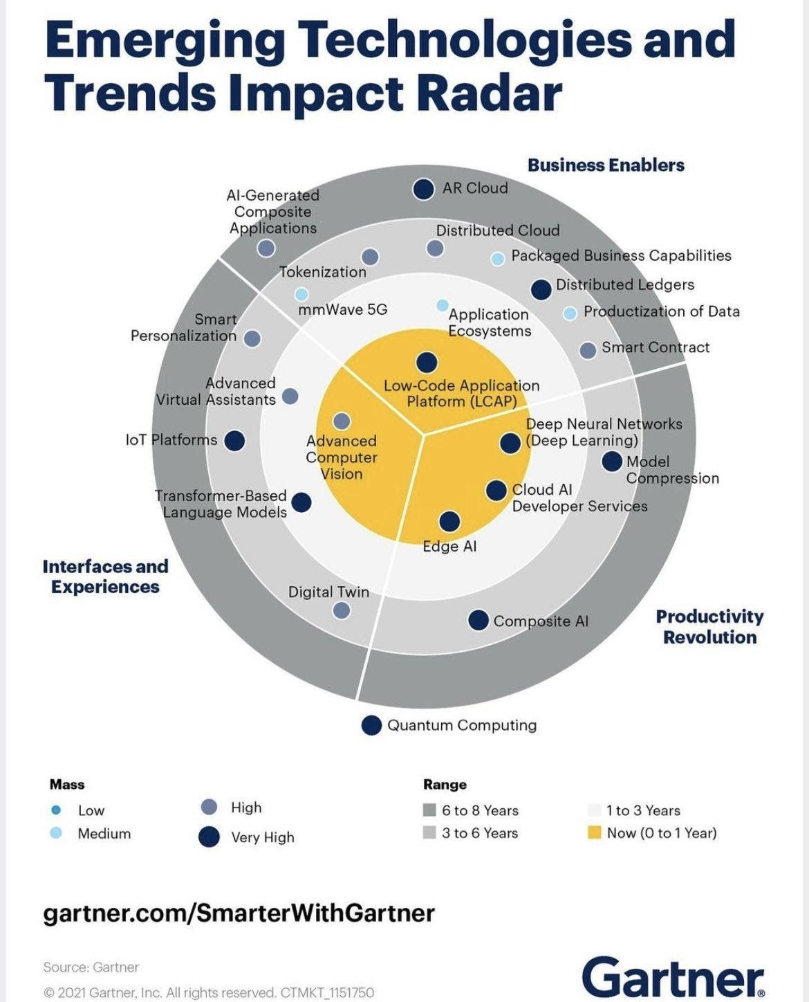 According to Gartner's Trend Impact Radar, Low-Code Application Platforms (LCAPs) are positioned near the epicenter of transformative technologies within the IT landscape. This strategic placement underscores the paramount importance and wide-reaching impact of LCAPs, situating them at the heart of innovation alongside groundbreaking technologies such as Deep Neural Networks (Deep Learning), Cloud AI Developer Services, Edge AI, and Advanced Computer Vision.