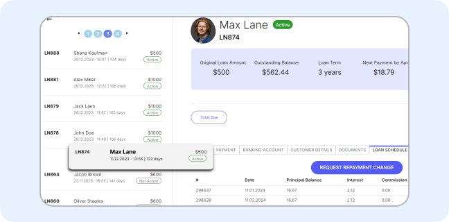 Compassway consumer lender software closes the entire lifecycle of the lending origination process, from loan application, borrower assessment, and credit decision engine to servicing self-service repayment, reporting, and more. Our automated lending software allows you to manage the entire lending process from one admin panel, which allows you to increase management efficiency.